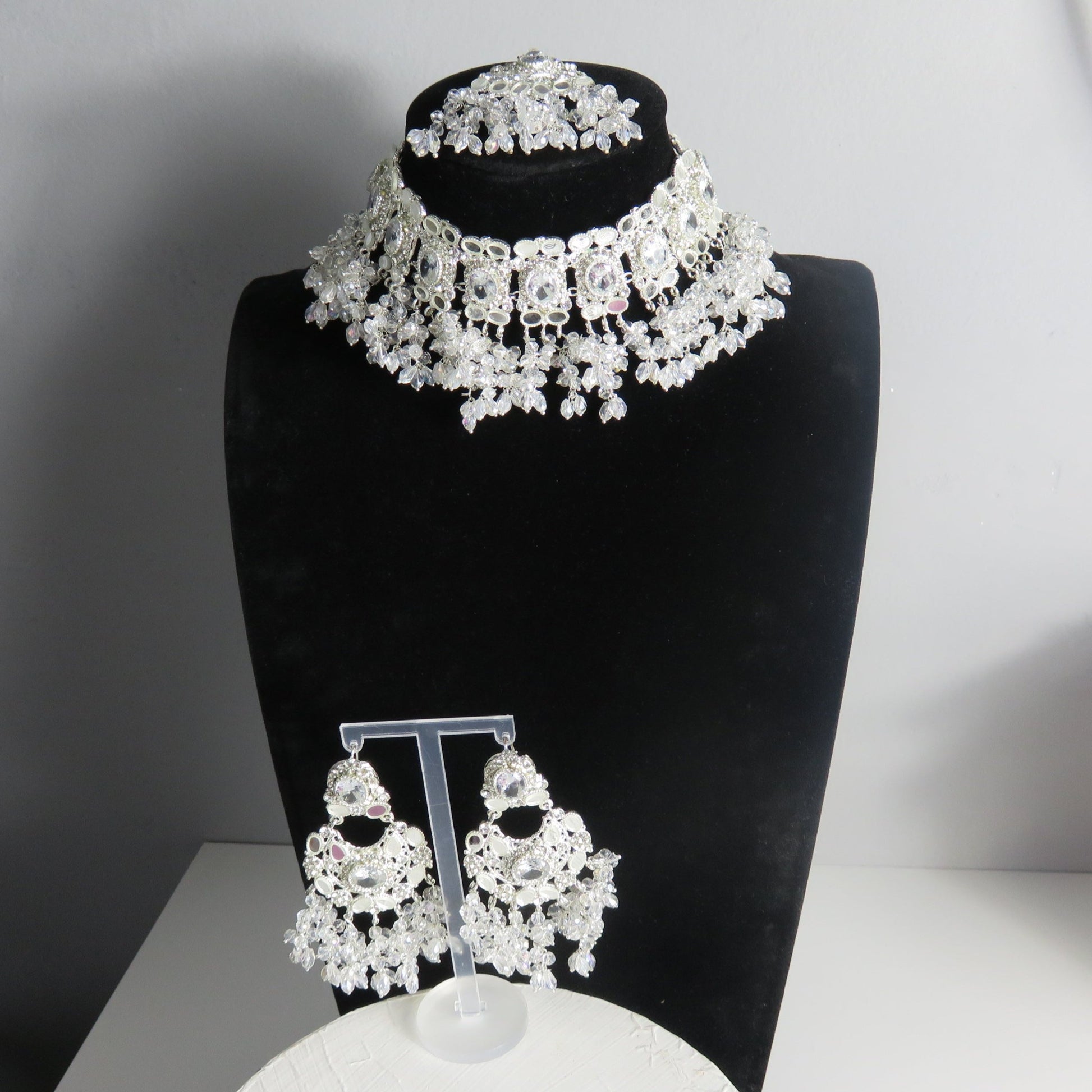 Crystal Droplets Choker Necklace Set
